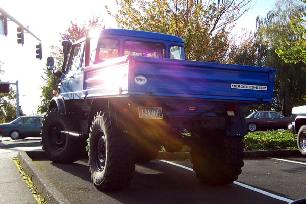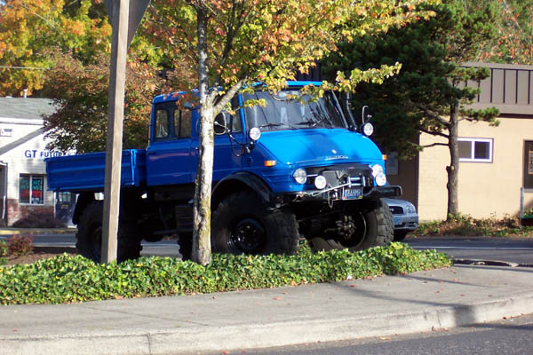 Mom spotted this Harley parked on the main street through Astoria on Monday. While she was taking pictures the owner spotted her and gave her the story. It is a 1938 model U that less than 500 were made for the police to use to chase down the new hot rod Sportsters and such. The man said he had just bought it from another man who was about to sell it to a Japanese collector. It would have gone into a private collection in Japan had the new owner not been able to buy it. The bike has been lovingly restored by the previous owner and the new owner rides it regularly. Dad says the Unimog started out as a military vehicle in the 50's and has been adopted for all kinds of uses since. He had never seen one in the "flesh" before and was amazed to see one in a parking lot in Portland with current tags and registration. It appeared to be in regular service but there was noone around to ask to get any details.