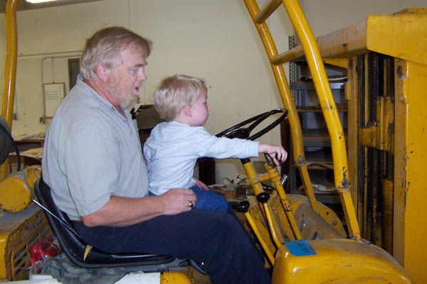 When we visited Dad's uncles print shop I was impressed by all the machinery. There were presses and shears and all kinds of things running all over the shop. I was able to figure out how most of them worked by watching them for a while, but some of them still confuse me. I'm glad they know what they are doing. After we had lunchTom gave me forklift lessons. I think I picked it up pretty well and am well on my way to becoming a professional. Thanks uncle Tom.