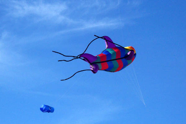 We were just driving along in Seaside when we happened to look up and see several HUGE kites in the sky. Dad headed towords where he thought they were and we ended up on the beach. There was a kite festival going on that week and the kite flyers were just setting up and practicing for the competitions later in the week. Some of the kites were at least 50 feet long or longer and some were flown by more than one person. It was awesome and we watched for a long time.